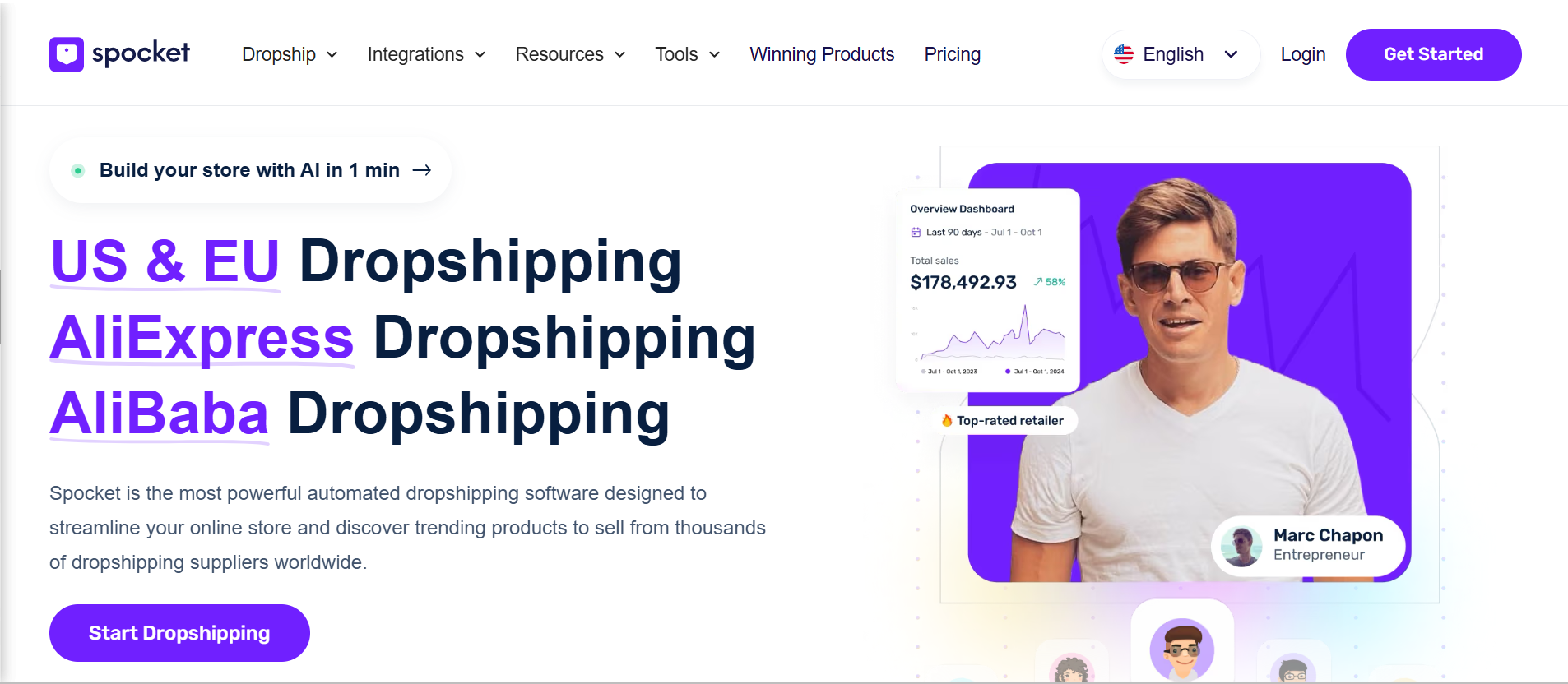 Spocket specializes in suppliers from the US and EU, which ensures faster shipping to Western customers. While the product range is smaller, you benefit from reliable lead times and quality control, reducing the risk of complaints during Halloween. Perfect for sellers who value fast delivery and high customer satisfaction over sheer volume.